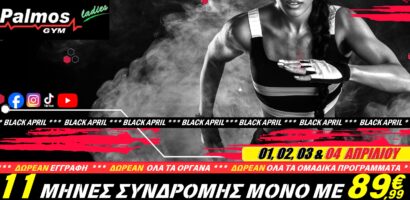 No1 BLACK APRIL FITNESS GYM OFFER… Προσφορά σαν Ψέμα…Μόνο Αλήθεια 11 Μήνες Συνδρομής μόνο με 89,99€ – Η προσφορά ισχύει μόνο 01,02,03 & 04 Απριλίου http://www.palmos-gym.gr/ ΔΩΡΕΑΝ εγγραφή ΔΩΡΕΑΝ όλα τα ομαδικά προγράμματα,TRX,SPINNING BIKES ΔΩΡΕΑΝ όργανα